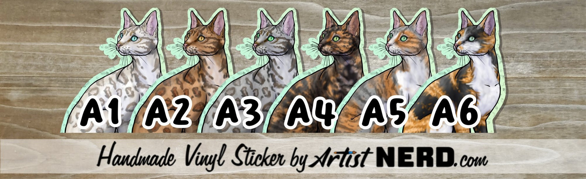 This listing is for (1) single handmade Sitting Lucky Cat printed vinyl sticker. This is a high quality waterproof vinyl sticker decal that is laminated for added strength and durability. May be applied to most smooth and hard surfaces such as plastic, metal, glass, paper products, walls or sanded wood. Permanent adhesive.