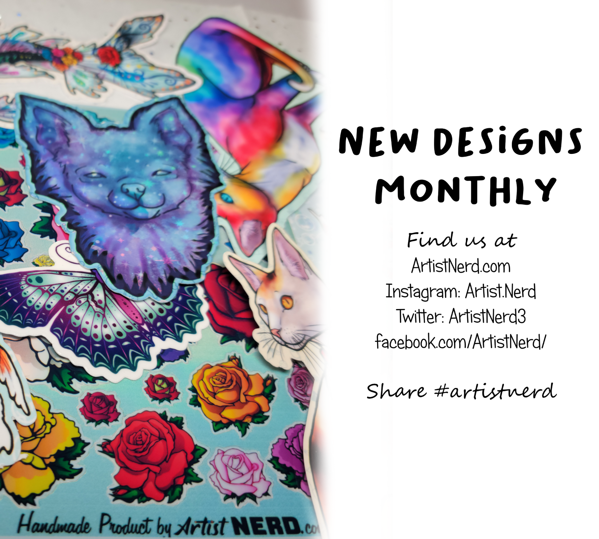 Each sticker is a handmade illustration by Marsi and is a high quality, waterproof printed vinyl sticker that is laminated to last even longer. May be applied to most smooth and hard surfaces such as plastic, metal, glass, paper products, walls or sanded wood. Permanent adhesive though may be repositioned with care shortly after placement.