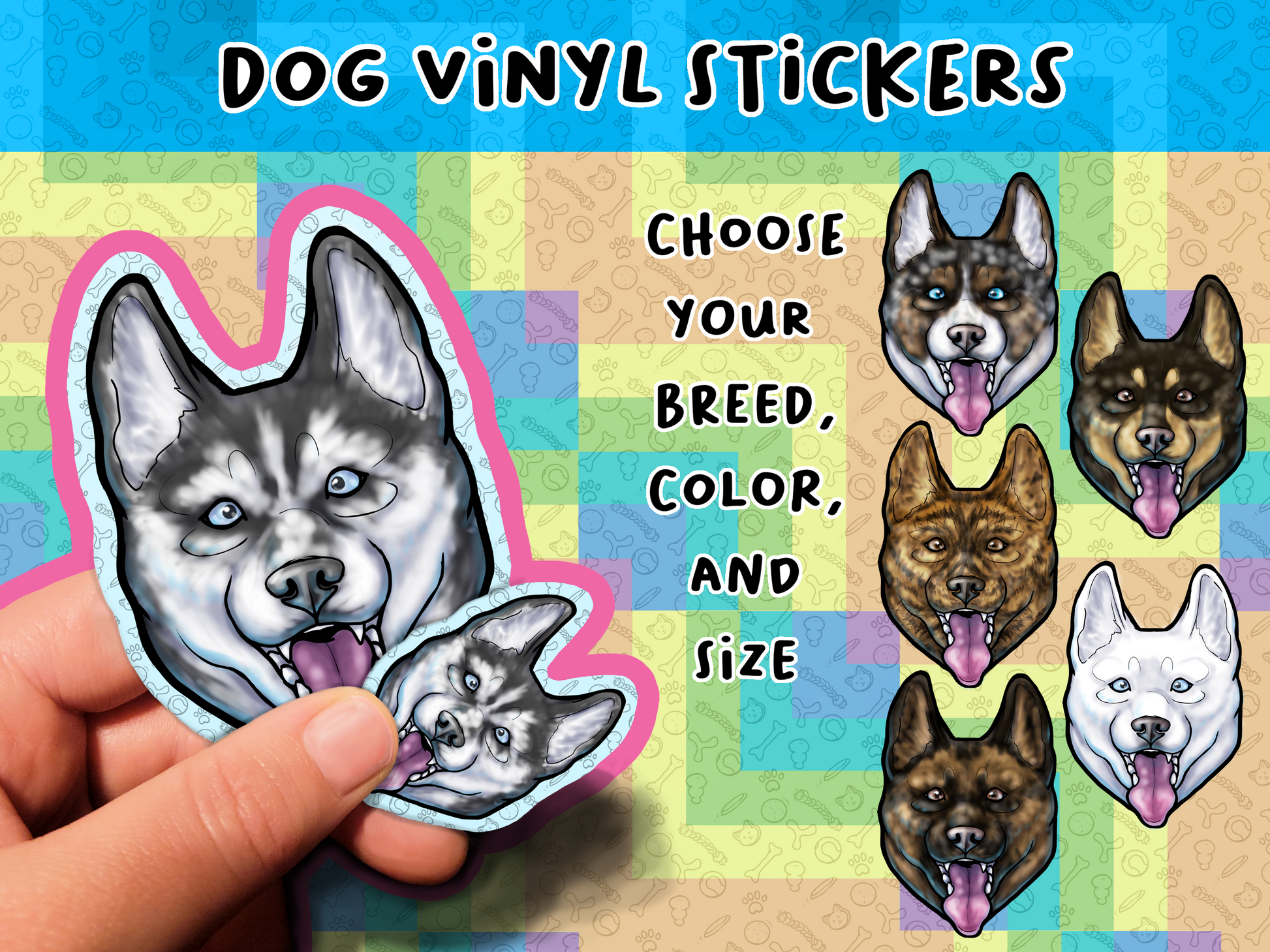 These handmade, high quality waterproof printed vinyl stickers are made for your expectant of good things dog lover. These excited dogs with their bright eyes will melt your heart and have been designed to look like your favorite Enthusiastic dog breeds such as Husky, Corgi, Doberman, Pitbull, Labrador Retriever, Shepherds, Alaskan Malamutes, Sheepdog, Wolf-dog, mixes, mutts and more. A happy pup requires nothing more than some chin scratches and maybe a clean cloth now and again. Matches your favorite fluffy dog breeds! So adorable you'll want to cover your flat surfaces with these adorable dogs.