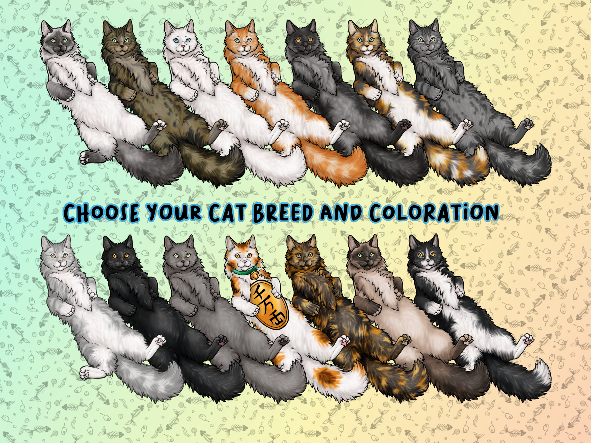 C6: The Tie-Dye Rainbow Cat sports all the colors of the rainbow and more. For those who want to have a bright and colorful kitty or show off their LGBTQ2SIA+ pride.