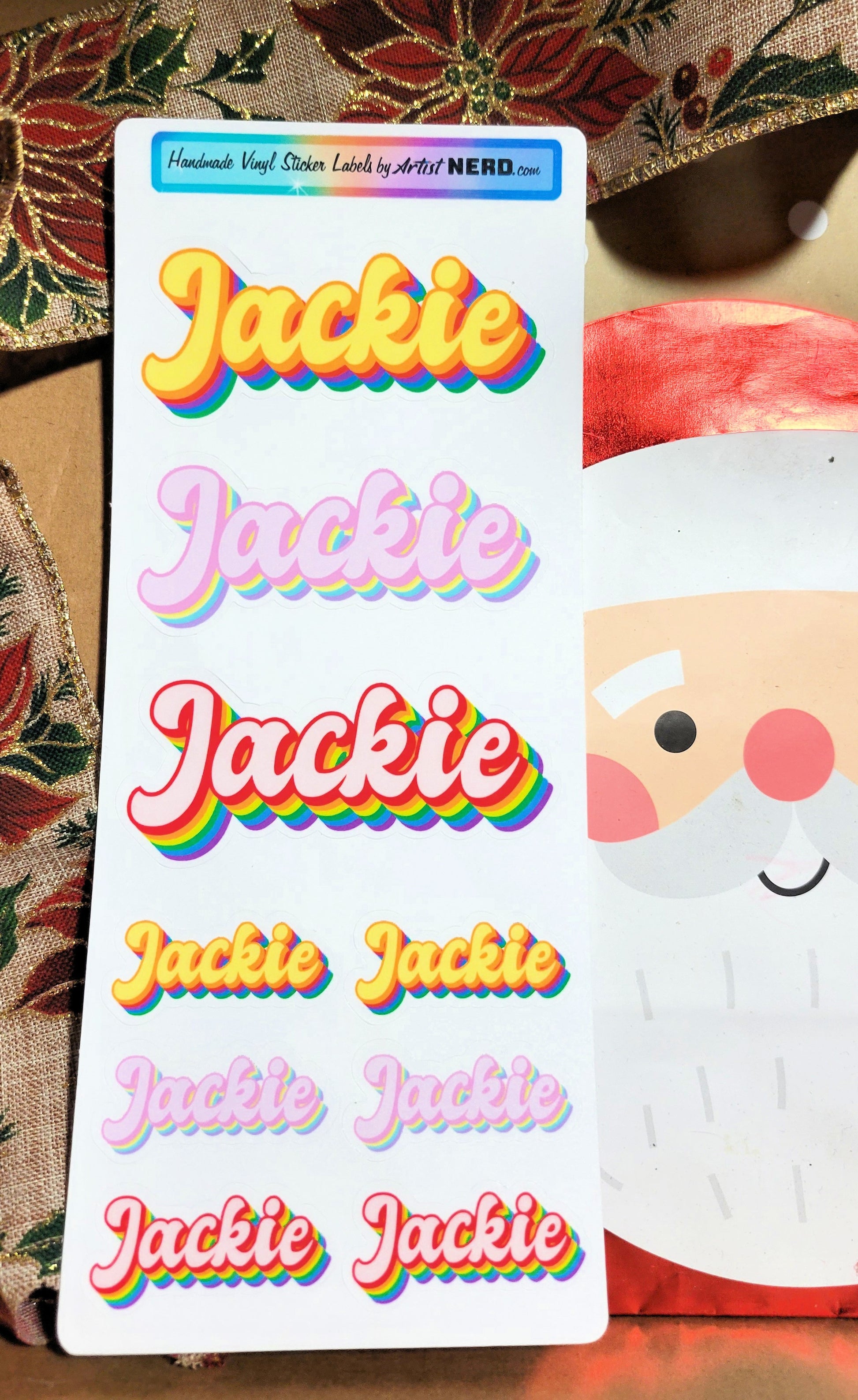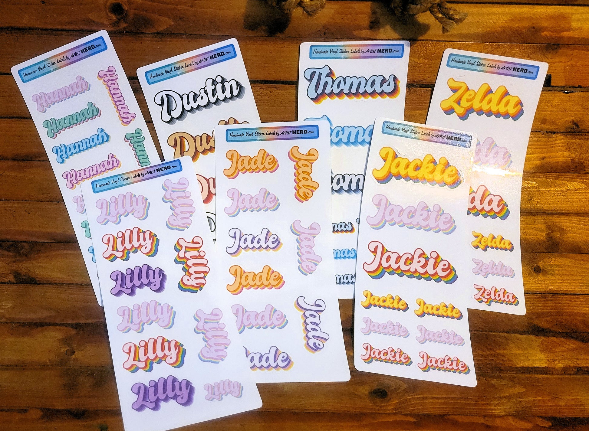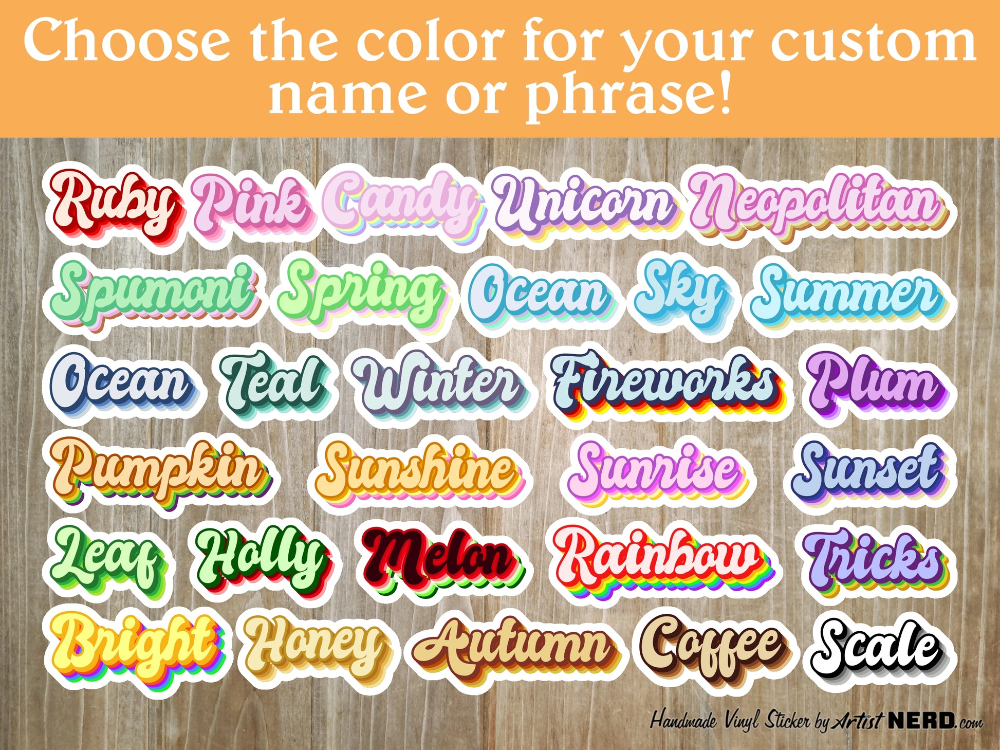 Retro Personalized Name Vinyl Sticker Rainbow Sheet - Choose your size